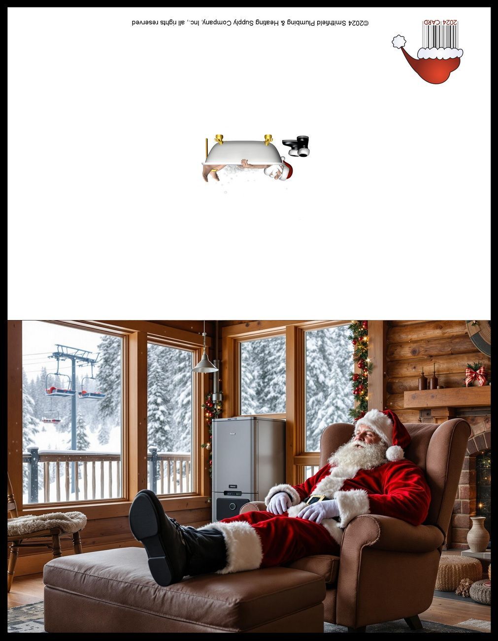 Santa Warming up in a Rustic Cabin on a Ski Resort by a Gas-fired boiler - Style B