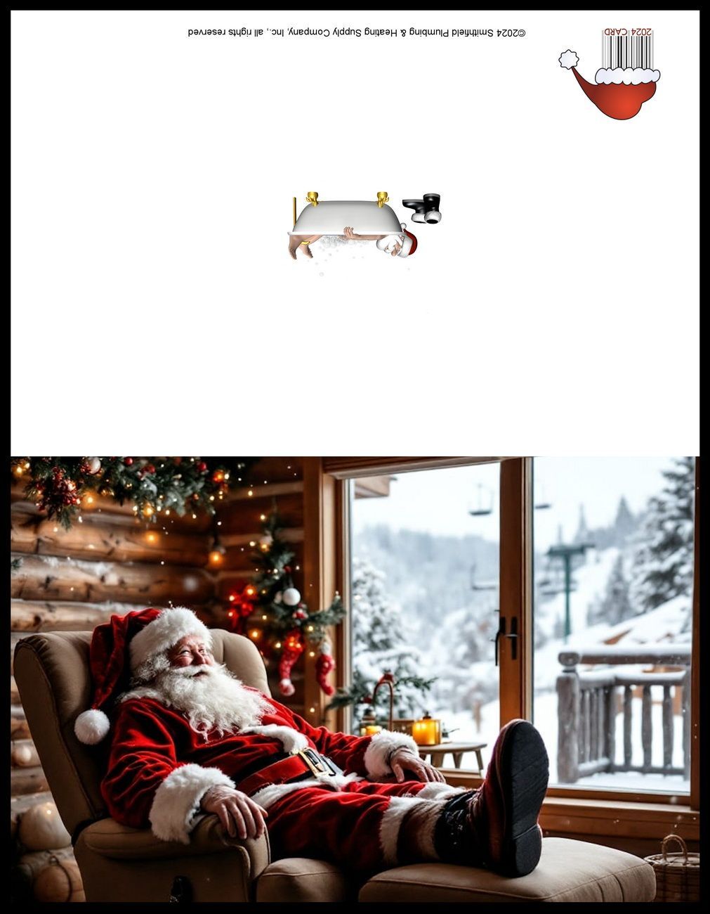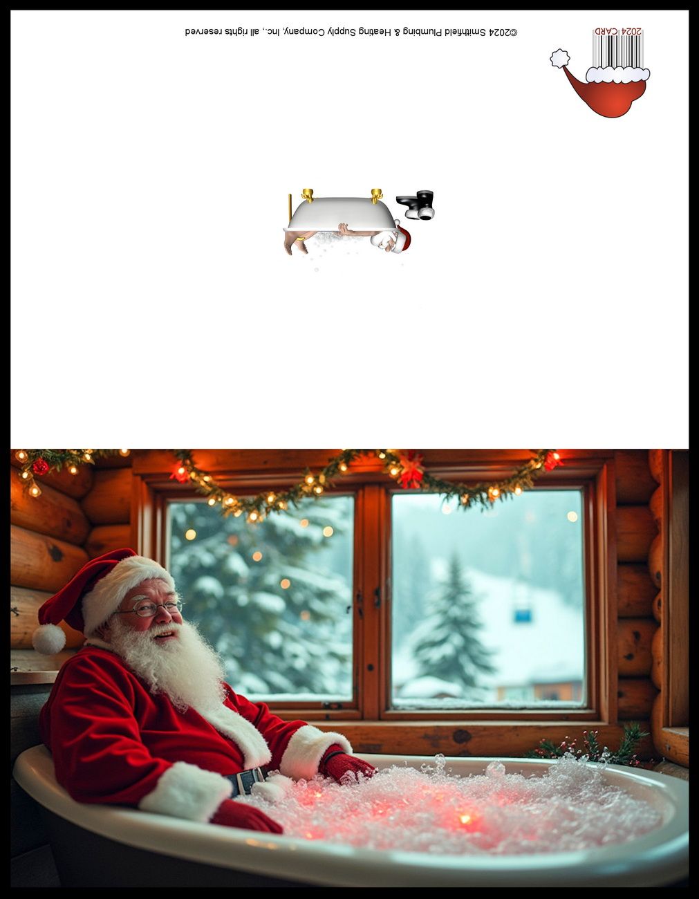Santa Claus in a Whirlpool tub in a rustic cabin in the white mountains.