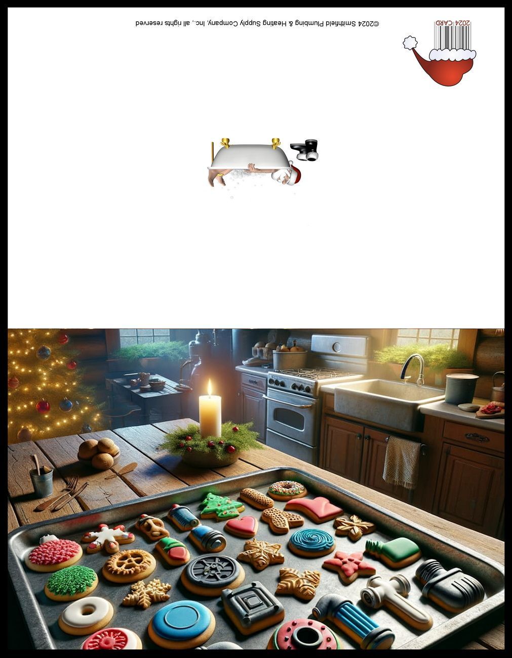 Christmas Cookies shaped as plumber's tools on the kitchen table - Style B