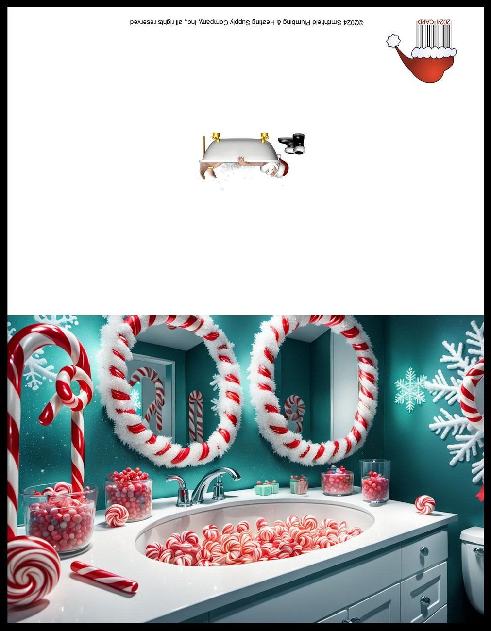 Santa Claus in a chocolate and candy themed bathroom (meh)